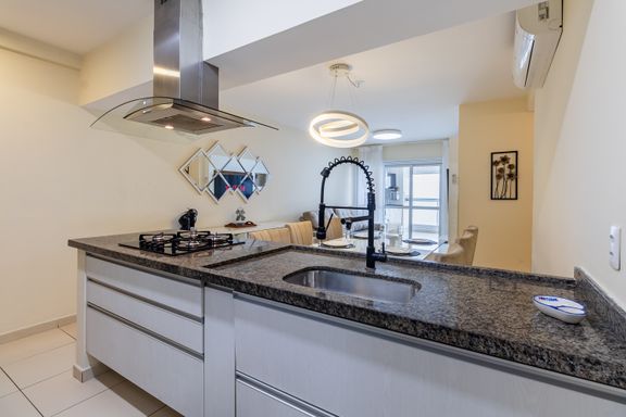 Morar em um apartamento com três suítes transforma a rotina. Cada ambiente preserva sua individualidade, enquanto a sala ampla integrada à varanda gourmet cria um espaço convidativo para encontros especiais. A vista panorâmica para o mar, em andar alto, traz luminosidade natural e uma sensação constante de liberdade. A sacada fechada em vidro, a churrasqueira, a cozinha grande em estilo americano e os móveis planejados reforçam a praticidade. Ar-condicionado, fechadura digital, armários embutidos e acabamentos em porcelanato e gesso elevam o padrão de conforto. O fato de estar mobiliado facilita a mudança e permite aproveitar o imóvel desde o primeiro dia.