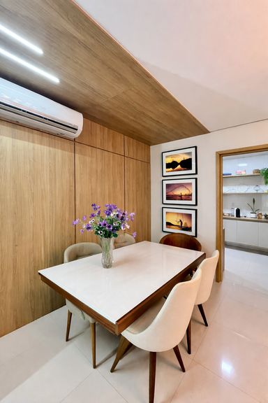 O imóvel já está mobiliado e conta com planejados, ar-condicionado e acabamentos de qualidade, como porcelanato, gesso e detalhes em granito. A cozinha é ampla e funcional, e a varanda fechada em vidro com churrasqueira proporciona conforto em qualquer época do ano. As duas vagas de garagem demarcadas reforçam a praticidade no dia a dia.