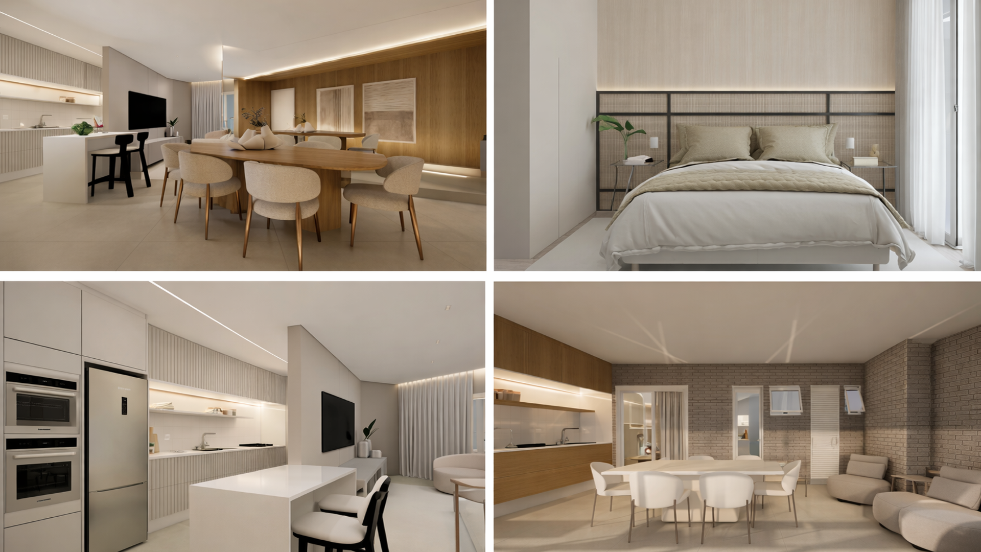 Os apartamentos têm 2 ou 3 dormitórios, com suíte, metragens entre aproximadamente 67 m² e 107 m² e varanda gourmet. As plantas são bem distribuídas, com salas integradas, ventilação natural nos banheiros e acabamento em porcelanato, reforçando o padrão elevado do projeto.
